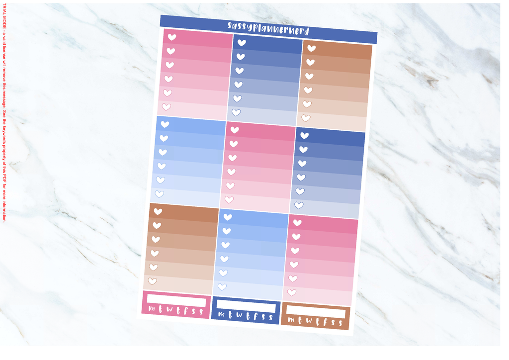 Stickers are printed on premium matte sticker paper. Kiss cut for easy use in planners.